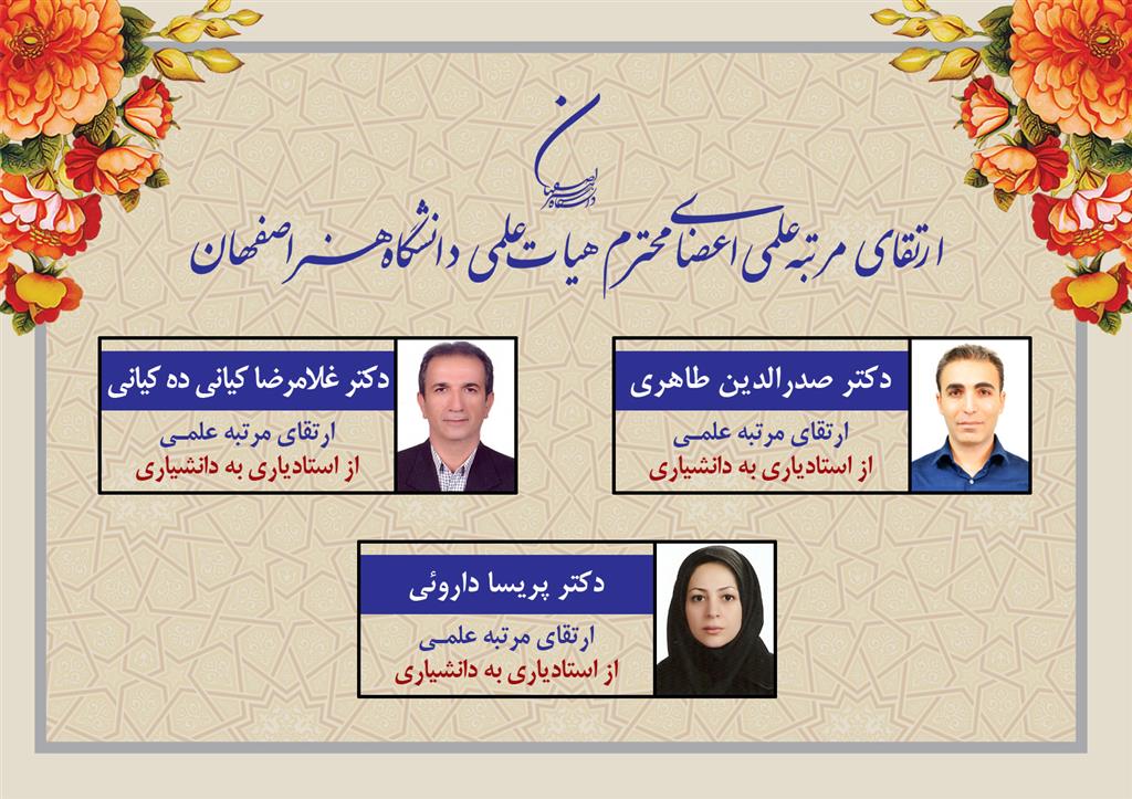 • ارتقای مرتبه علمی سه نفر از اعضای هیات علمی دانشگاه هنر اصفهان